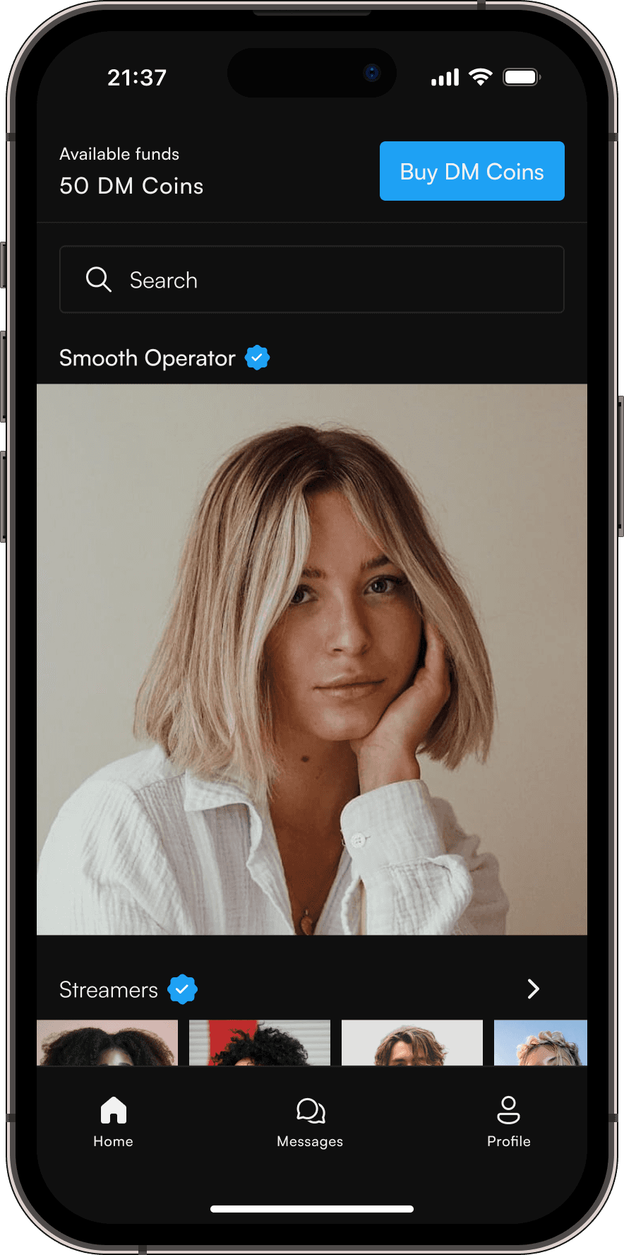 The DM Coin is an in-app currency used for messaging creators. It’s not a cryptocurrency — think of it as a loyalty point system. Fans spend DM Coins to send DMs to creators, while creators earn DM Coins that can be exchanged for USD.