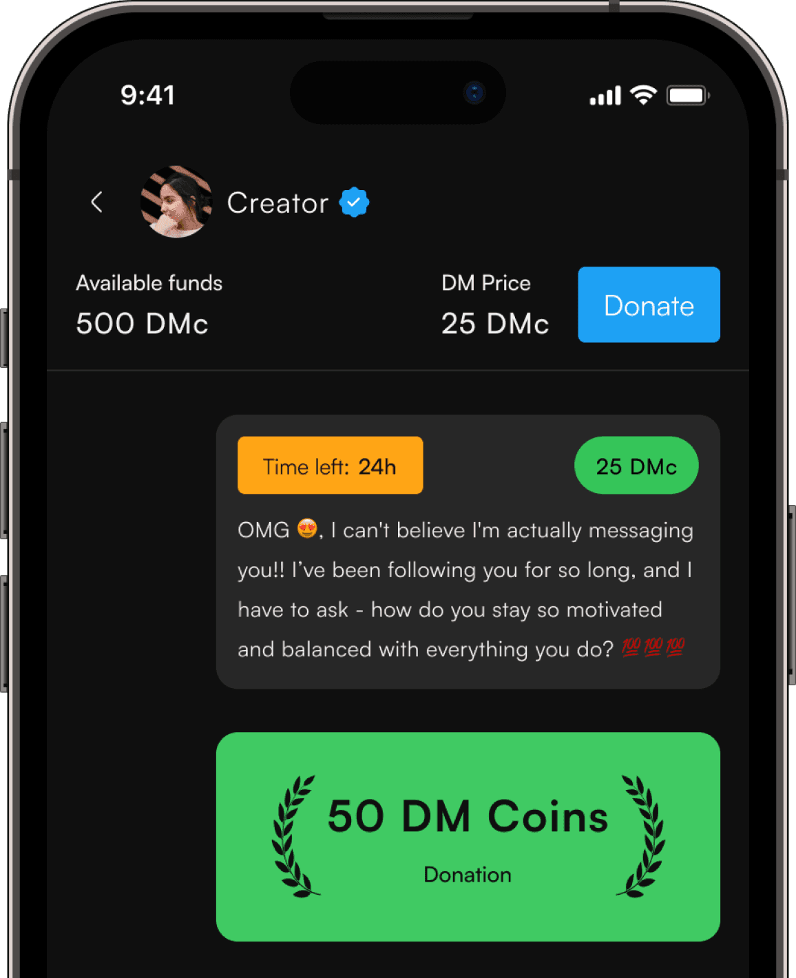 We’re sorry to hear that, but don’t worry – we’ve got you covered. If you don’t receive a reply from a creator within 24 hours, the DM Coins will be refunded to your account automatically.
